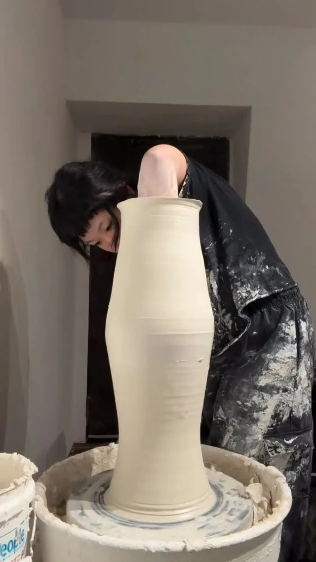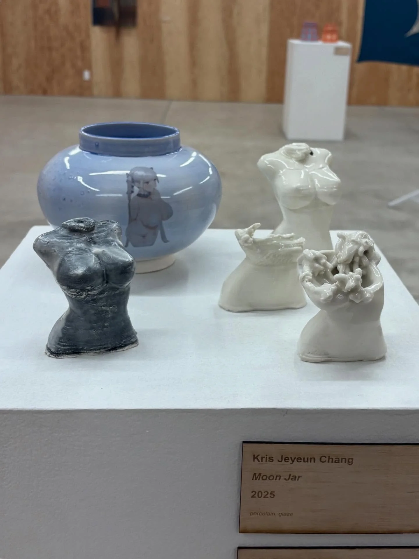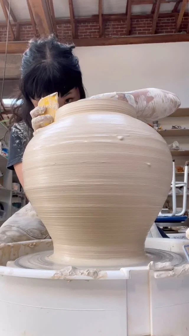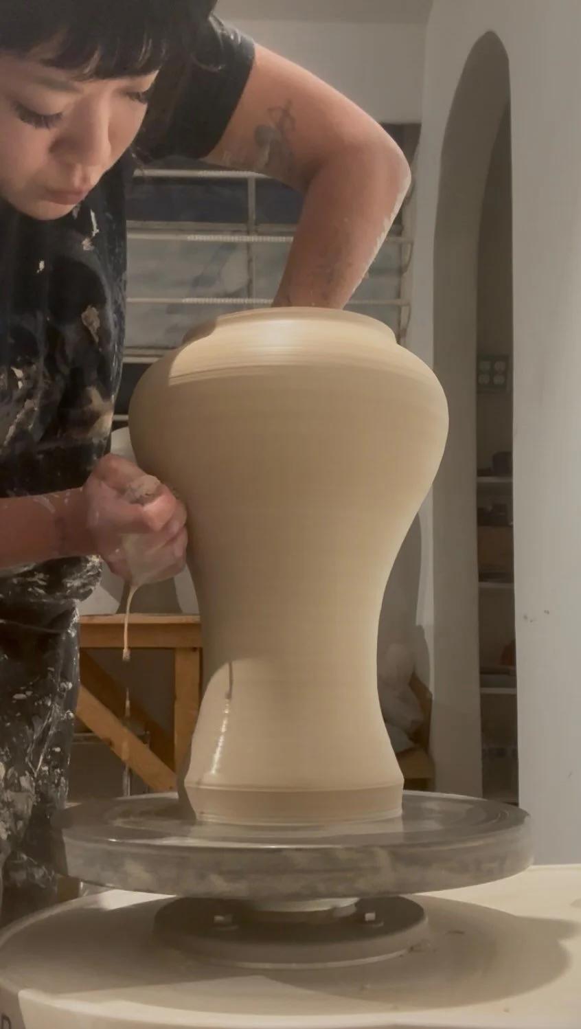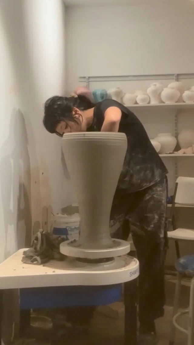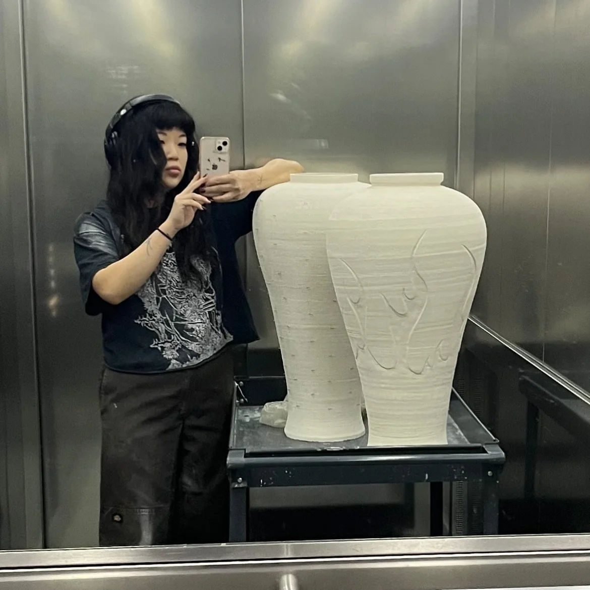 Kris Jeyeun Chang (b. 1996, Los Angeles) is a Korean-American ceramic artist with a focus on creating contemporary cultural works. She uses traditional Korean wheel throwing techniques to make her vessels - historical forms such as the moon jar and maebyeong vase. Lately she has also been expanding on her clay 3D printing practice.